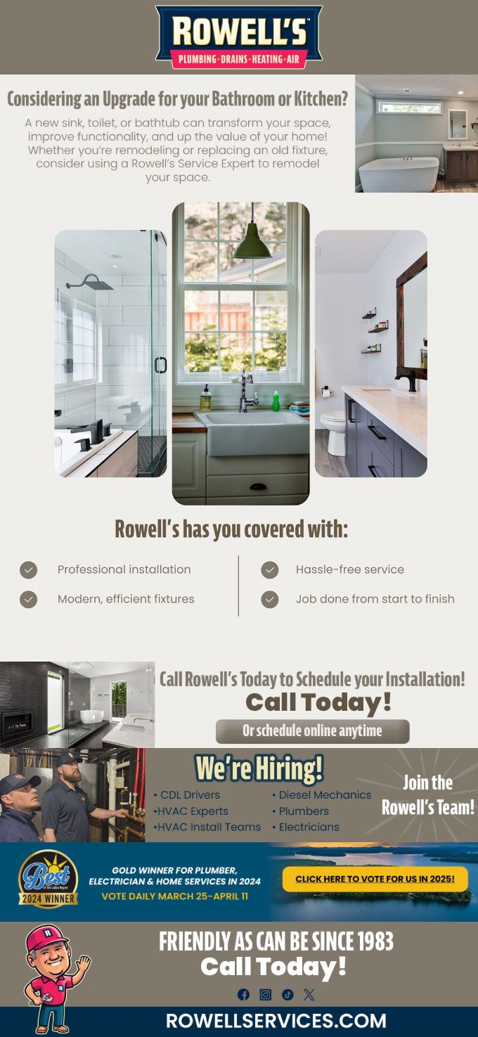 "Friendly As Can Be Since 1983!" When you need help with your plumbing, drains, heating, cooling or electrical in Barnstead, you can always rely on Rowell's Services! Call us now or book online!
